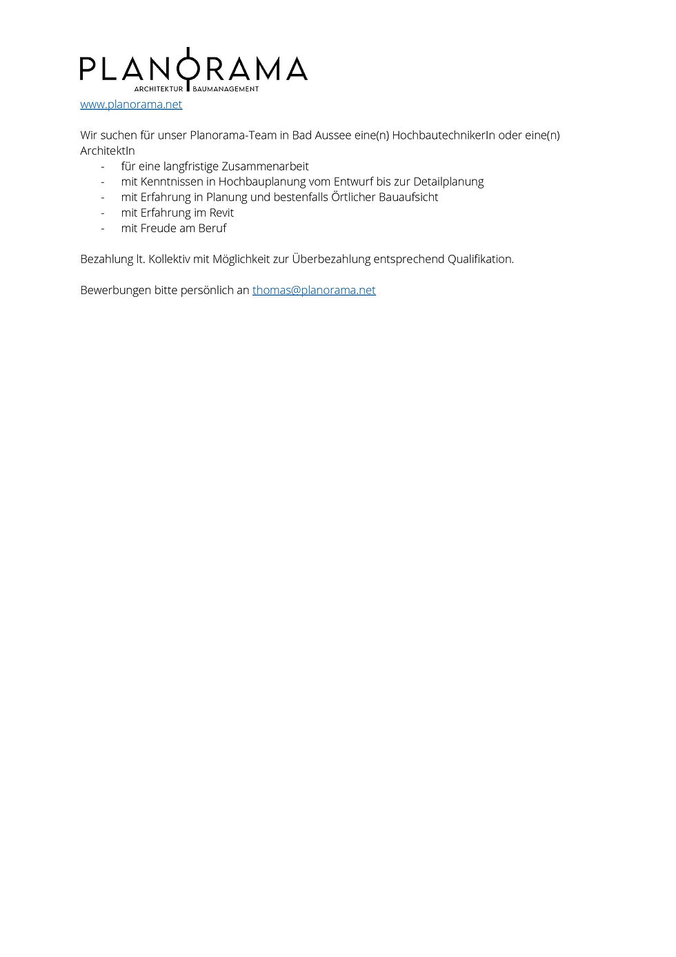 Bewerbungen bitte persönlich an thomas@planorama.net